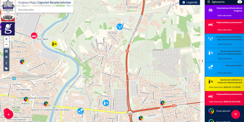 Na osiedlu Pobitno jest stosunkowo mało zgłoszeń, ale dzięki temu narzędziu mieszkańcy mogą samodzielnie poinformować służby o występowaniu zagrożeń. Należy zaznaczyć, że mapa nie służy do zgłaszania sytuacji alarmowych. Takie zgłoszenia alarmowe lub przestępstwa powinny być zgłaszane bezpośrednio na numer alarmowy 112 lub 997.